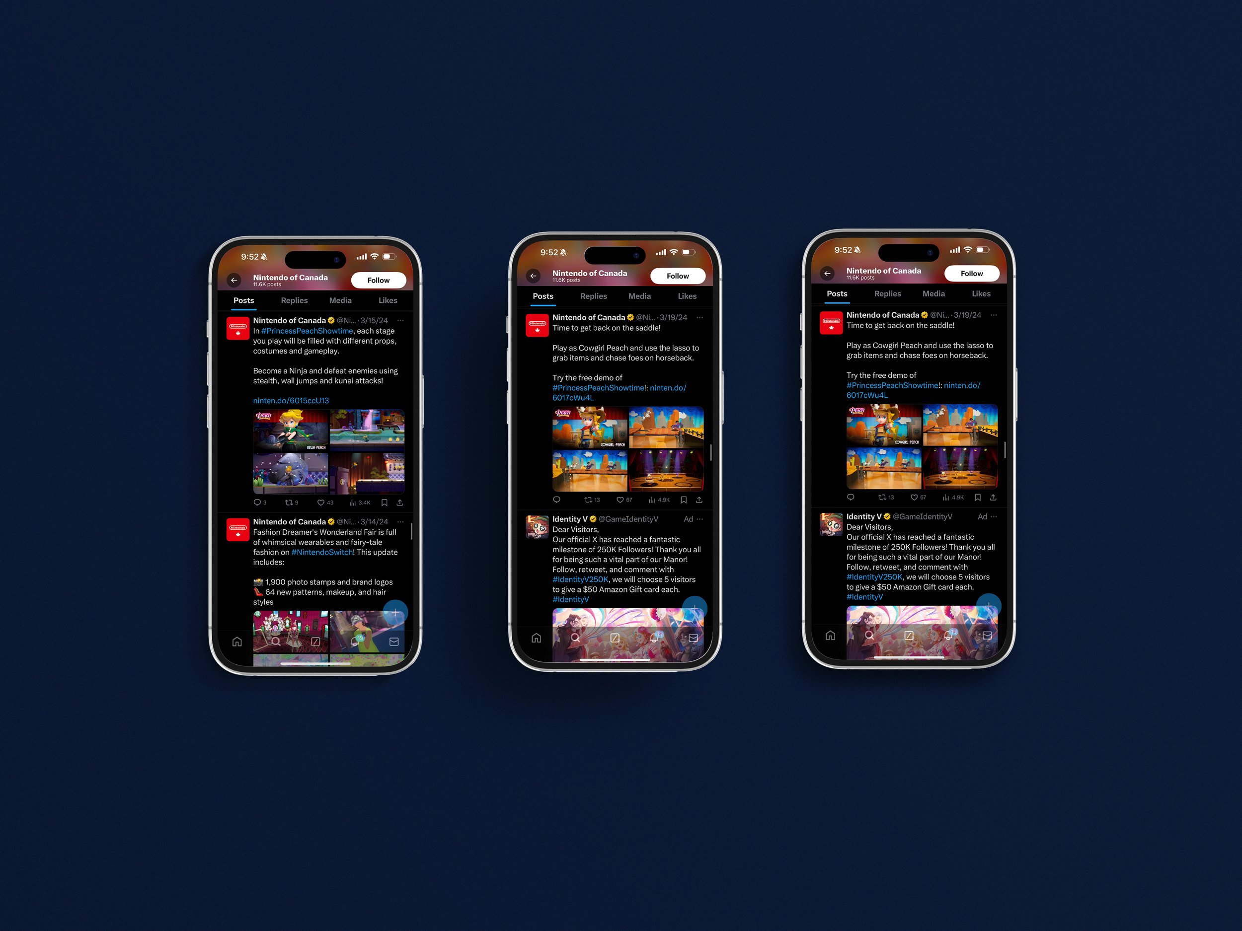 The Nintendo of America, Nintendo of Canada, and the LATAM team control their social media channels. These are here to highlight the partnership and designs, including the Nintendo NY event space and movie posters repurposed by the larger design team.